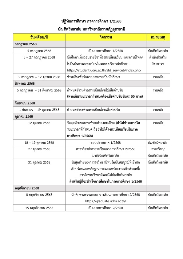 ปฏิทินการศึกษา ภาคการศึกษา 1/2568