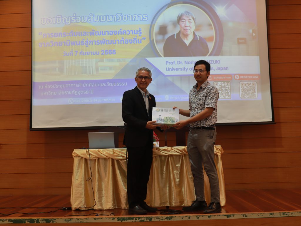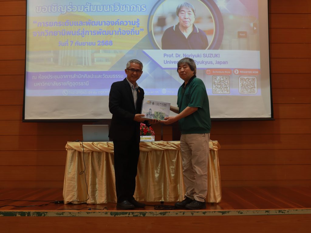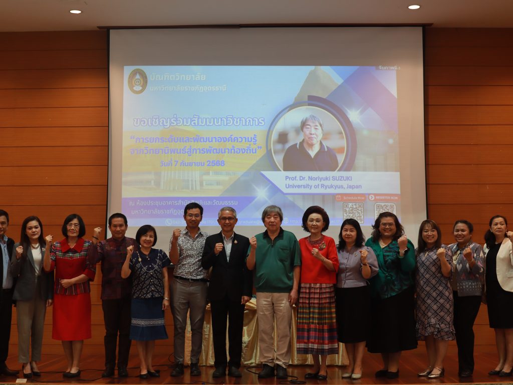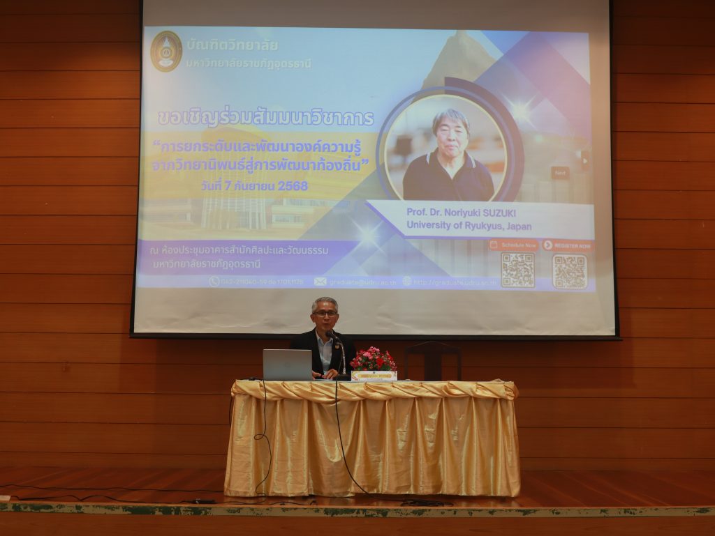 เวลา 08.00 น. วันที่ 7 กันยายน 2568 รองศาสตราจารย์ ดร.น.สพ.ฤทธิชัย พิลาไชย คณบดี บัณฑิตวิทยาลัย มหาวิทยาลัยราชภัฏอุดรธานี เป็นประธานเปิดการสัมมนาวิชาการในหัวข้อ “การยกระดับและพัฒนาองค์ความรู้ จากวิทยานิพนธ์สู่การพัฒนาท้องถิ่น” ณ ห้องประชุม อาคารสำนักศิลปะและวัฒนธธรรม มหาวิทยาลัยราชภัฏอุดรธานี
