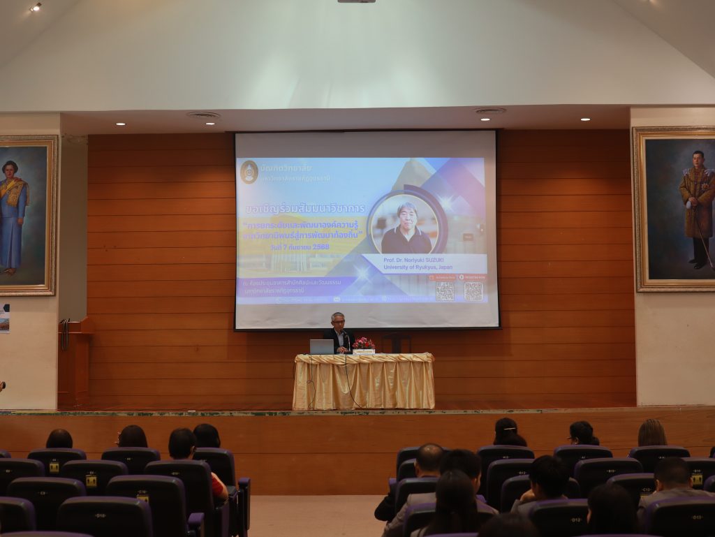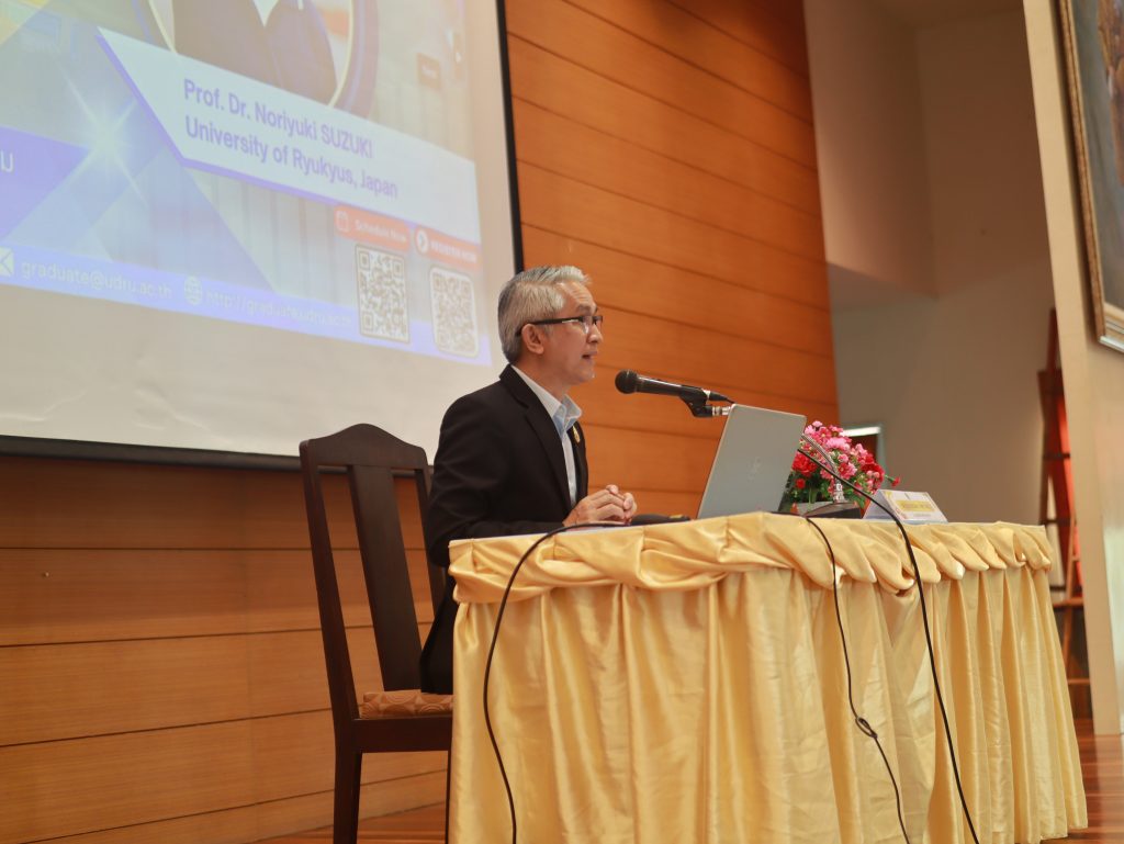 กิจกรรมการสัมมนาวิชาการในครั้งนี้ ได้รับเกียรติจาก Prof. Dr. Noriyuki SUZUKI จาก University of Ryukyus, Japan และ ดร.ธนพัชญ์ จันทร์ดิษวงษ์ เป็นวิทยากร และ ในช่วงบ่าย เวลา 13.30 น. เป็นกิจกรรมการเสวนาในหัวข้อ “องค์ความรู้ จากวิทยานิพนธ์สู่การพัฒนาท้องถิ่น” โดยผู้ช่วยศาสตราจารย์ ดร.พนายุทธ เชยบาล เป็นผู้ดำเนินการเสวนา