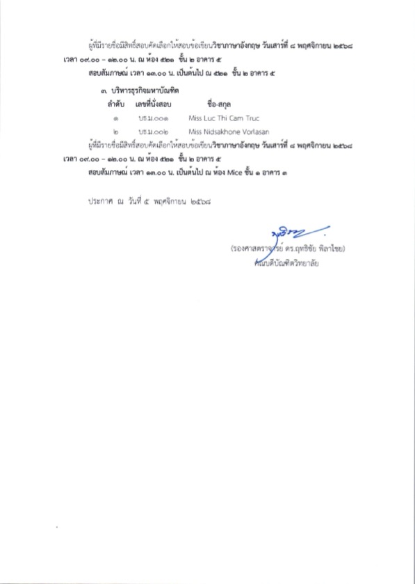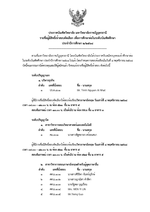 รายชื่อผู้มีสิทธิ์เข้าสอบคัดเลือก เพื่อการศึกษาต่อในระดับบัณฑิตศึกษา 2/2568