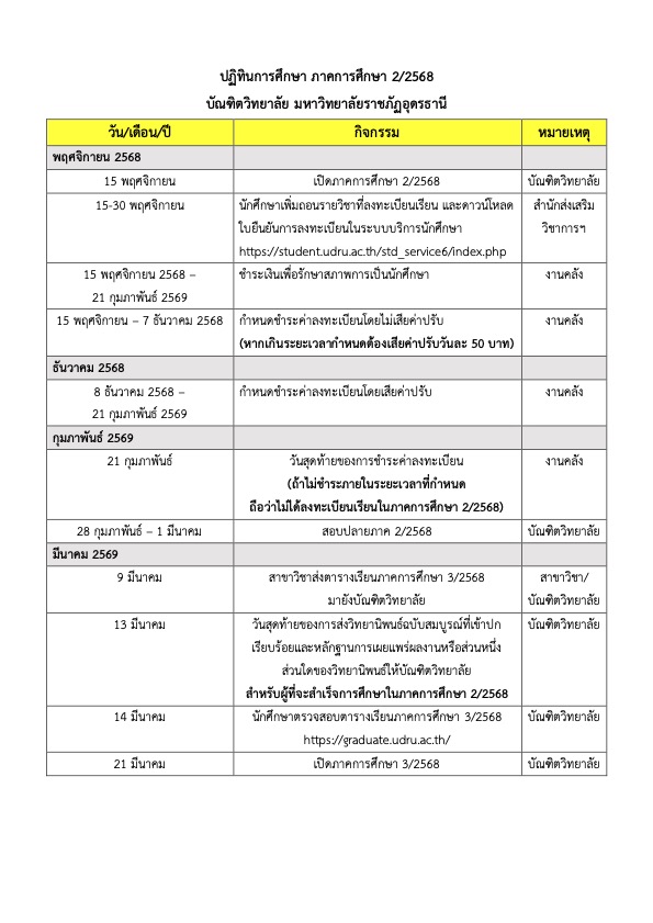 ปฏิทินการศึกษา ภาคการศึกษา 1/2568