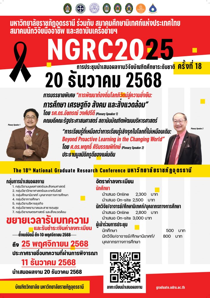 การประชุมนำเสนอผลงานวิจัยบัณฑิตศึกษาระดับชาติ ครั้งที่ 18 ขยายเวลาการรับบทความ และรับชำระเงินค่าลงทะเบียน ถึงวันที่ 25 พฤศจิกายน 2568